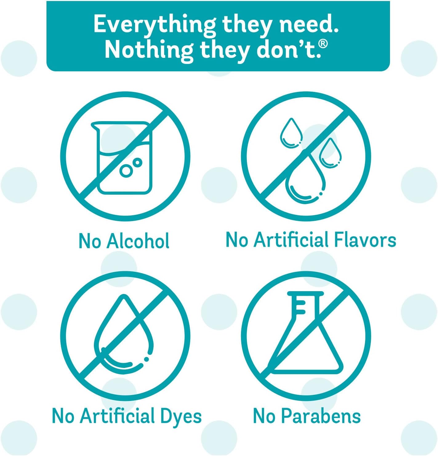Clean label: free of alcohol, artificial dyes, parabens, sugar, and gluten.